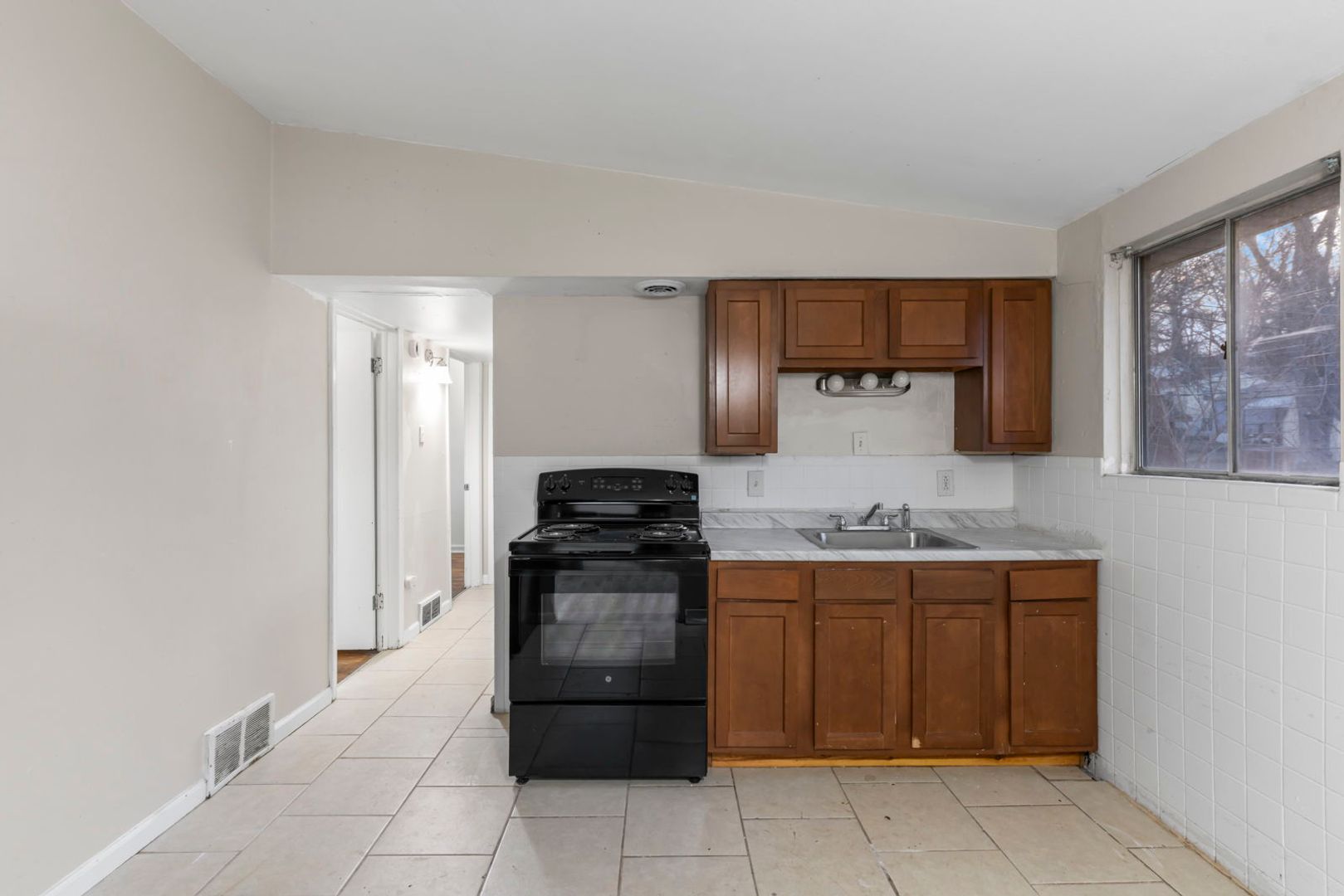 This newly renovated 3-bedroom, 1-bath single-family home offers a clean, functional layout with fresh updates throughout. The home features durable tile flooring in the main living areas, providing easy maintenance and a bright, open feel enhanced by natural light. Neutral wall tones create a welcoming canvas suitable for any décor style. The kitchen is warm and inviting, showcasing classic wood cabinetry, updated countertops. Hardwood flooring extends through select areas of the home, adding character and continuity between rooms and each bedroom offers comfortable proportions, hardwood flooring, and ample natural light, making them ideal for restful retreats, a home office, or flexible living arrangements. The bathroom has been refreshed with clean finishes that complement the home’s neutral aesthetic. Schedule a tour today and make this house your new home!